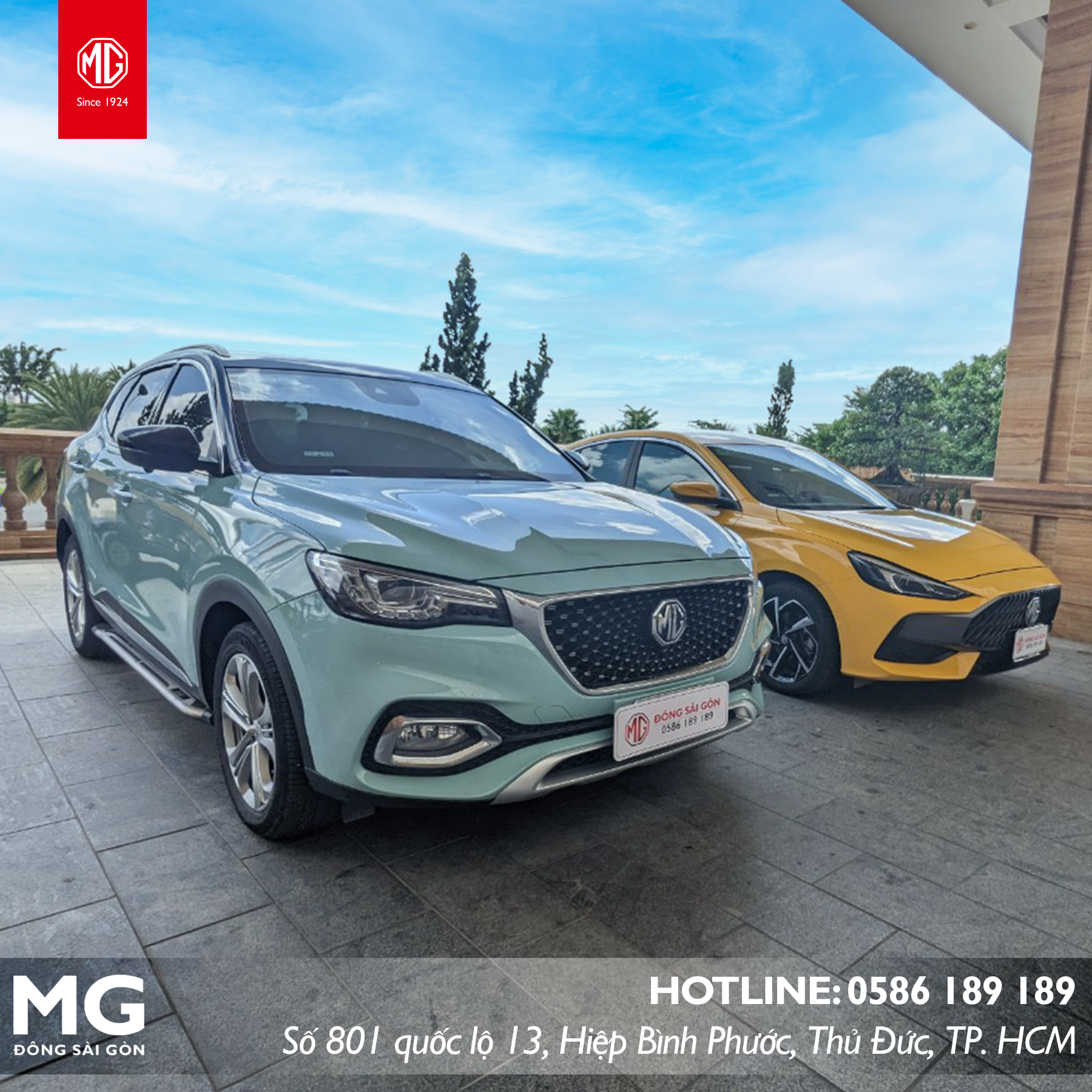 Mọi thắc mắc xin vui lòng liên hệ hotline 0586 189 189 để được giải đáp. Và đừng quên ghé thăm showroom MG Đông Sài Gòn tại 801 Quốc lộ 13, Hiệp Bình Phước, Thủ Đức, TP.HCM để trải nghiệm các dòng xe hiện đại của MG.